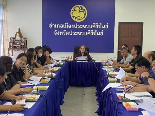 นางวาสนา บุญจันทรานุรักษ์ พัฒนาการอำเภอเมืองประจวบคีรีขันธ์ พร้อมเจ้าหน้าที่พัฒนาชุมจัดประชุมเชิงปฏิบัติการส่งเสริมการบูรณาการกลไกการขับเคลื่อนการขจัดความยากจน ณ ห้องประชุมศูนย์ประสานงานและช่วยเหลือประชาชนอำเภอเมืองประจวบคีรีขันธ์